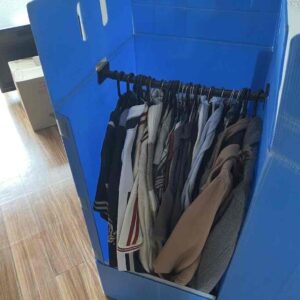 ハンガーは厚手薄手を合わせて10着前後、シューズボックスは16足の収納ができます。